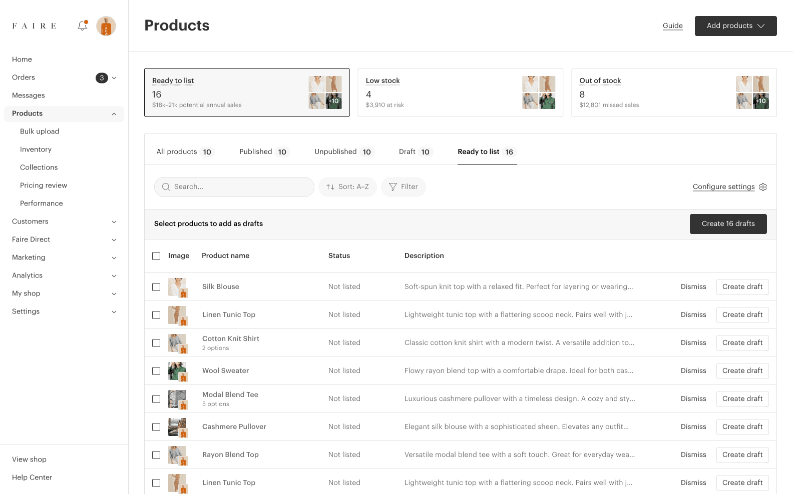 Brands had products on their websites that weren't listed on Faire, each one representing lost revenue. We built a tool to help them import those products from their website, but adoption was slow...
